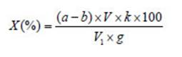 The amount of pectin required for saponification (X) was calculated by the following formula: