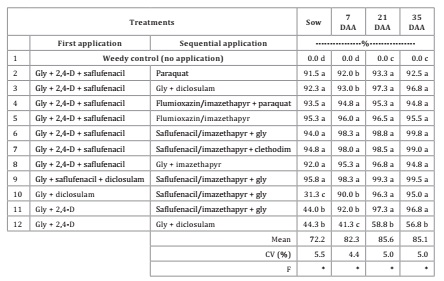 saflufenacil en cualquiera de las dos aplicaciones. Estos resultados resaltan