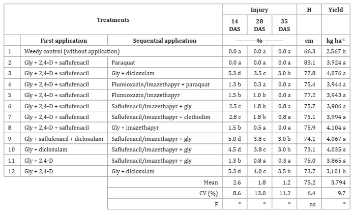 studied treatments were selective to soybean, which showed higher injury values