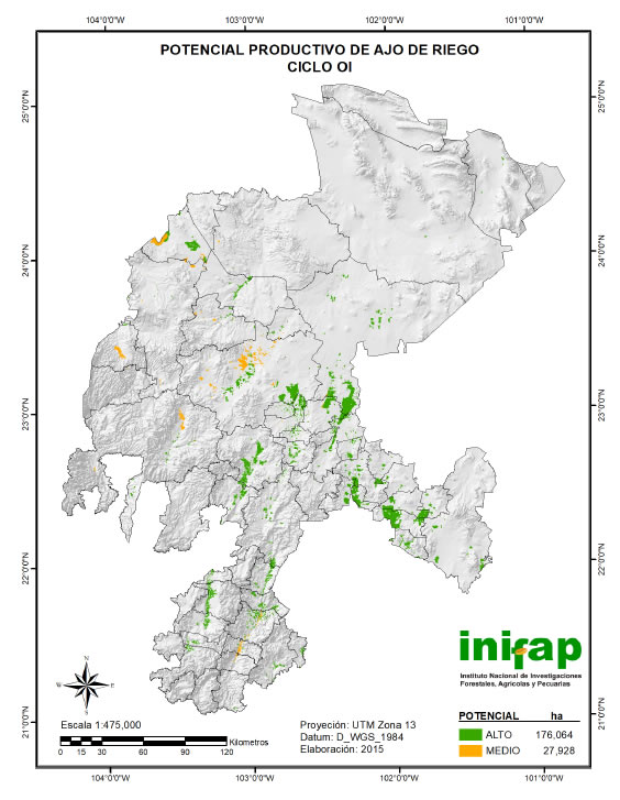 Figura 1: Zona con potencial para la producción de ajo en Zacatecas.