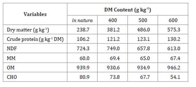 observed post the in natura, 500 g kg-1 DM, and 600 g kg-1