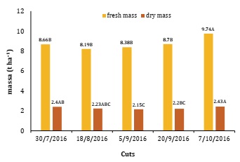 five cuts were calculated. Irrigated forage during winter in the Goiás’ Cerrado