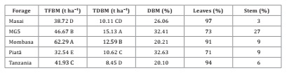literatura. Mombaça se destacó entre el Panicum y MG fue superior al piatã.