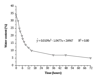 Later, at 36 hours, a relative stabilization in seed water loss was achieved with about 7.0%, finally dropping to 5.03% at 72 hours (Figure 1).