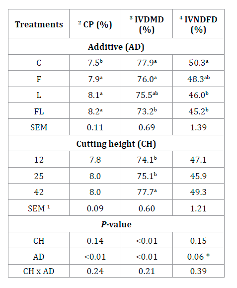 with AD. The highest IVDMD was observed for 42 cm CH, while IVDMD and IVNDFD