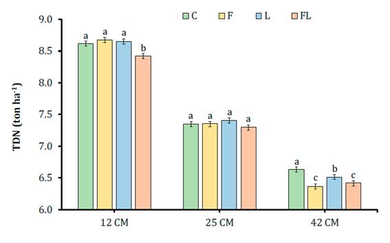 altura de 42 cm AC, mientras que la DIVMS y DIVFDN fueron más altas con C y F y
