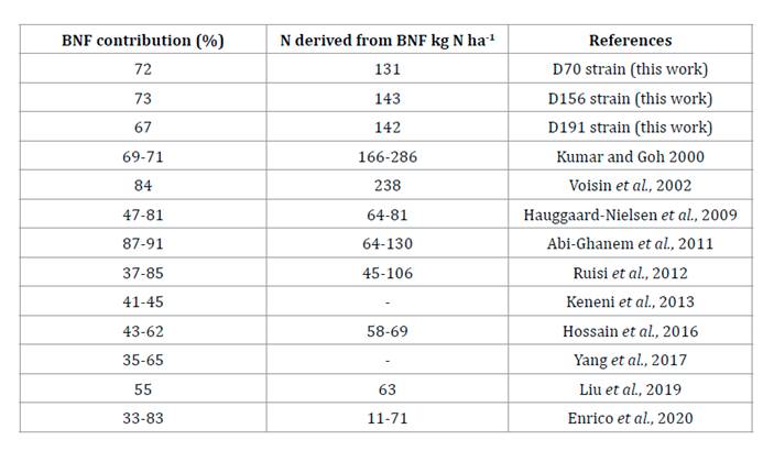 cepa D70 mantuvo su comportamiento de nodulación, contenido de N en biomasa y