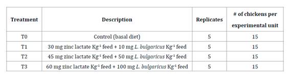 objective of this research was to evaluate the effect of zinc lactate and Lactobacillus