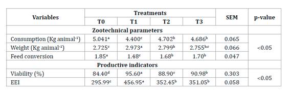 fue el más efectivo, mostrando mejoras en la ganancia de peso, la conversión