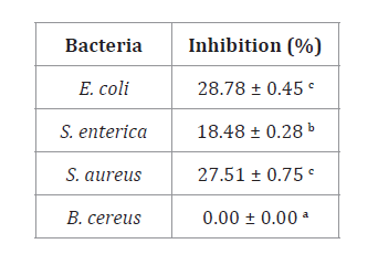 enterica, Escherichia coli, Staphylococcus aureus, and Bacillus cereus. Antibacterial