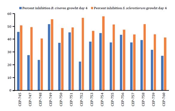 recolectados frente a los patógenos Botrytis cinerea Pers. (1797) y Sclerotinia