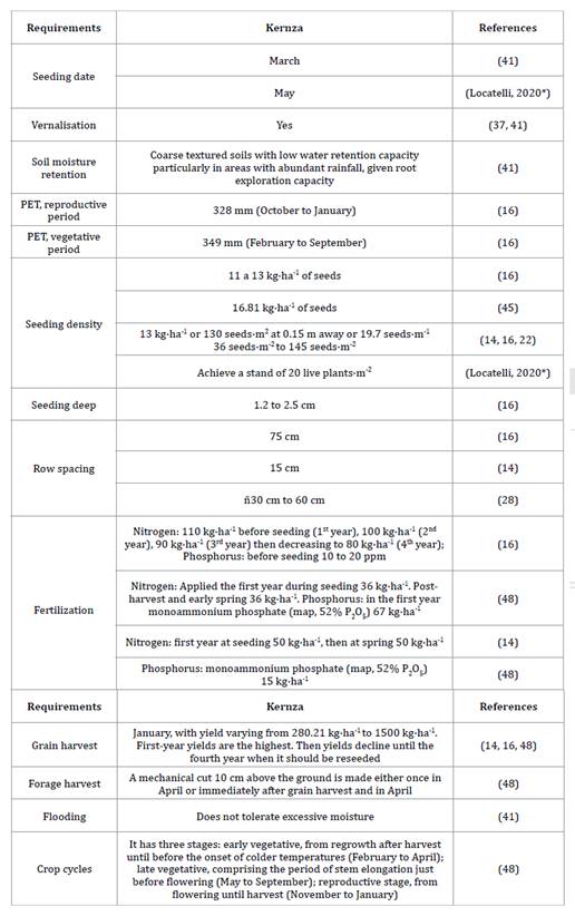 escenarios para evaluación de la aptitud de la tierras para Kernza®-intermediate