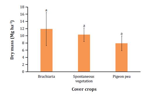 de vegetación espontánea y braquiaria mostraron la mayor acumulación del