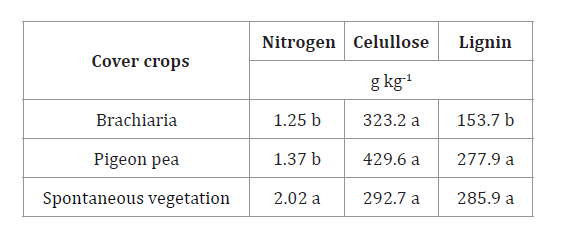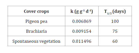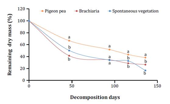 and brachiaria demonstrated higher decomposition rates, with 16.7% and 26.7% of