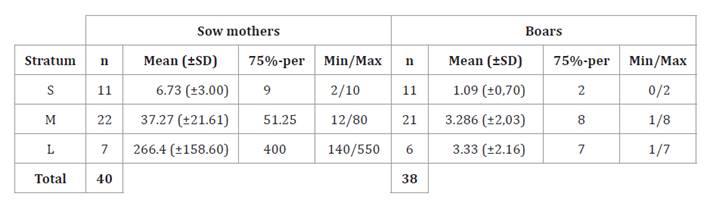 and Large (100%) strata. Regarding commercialization, data indicated piglet