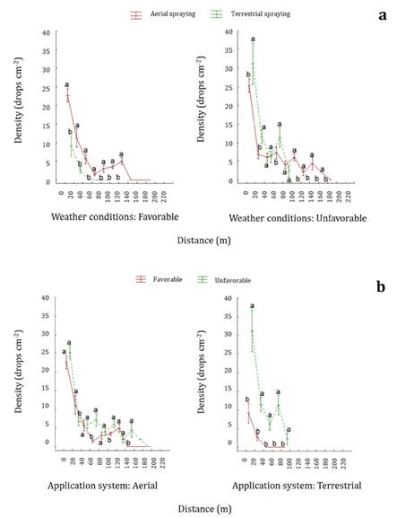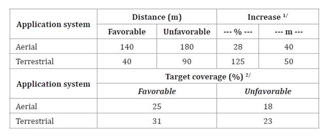 potencial de deriva. La densidad de gotas y la cobertura del área no objetivo
