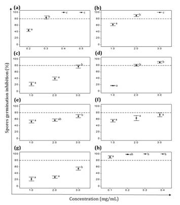 suppressing spore germination of both fungi. The C. gilliesii EE also
