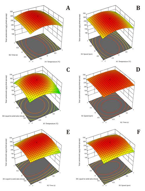 (336,06 μg/g de epicarpio seco) se optimizaron a una temperatura de 50°C, con