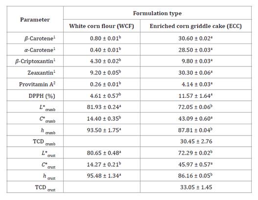 valores de carotenoides (30,60 μg/g de β-caroteno), provitamina A (4,14