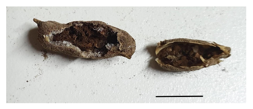 pods evidences Thecaphora frezii teliospores. Scale bar = 1 cm.
