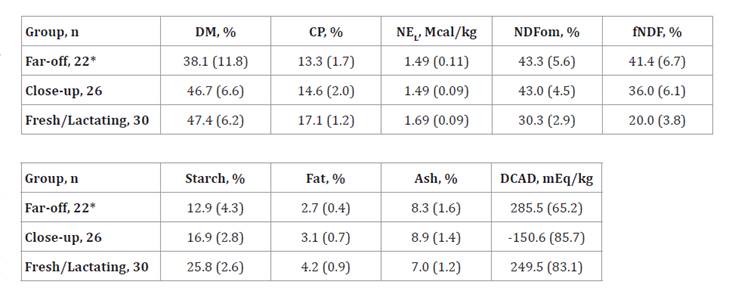 Table 2. Ingredient composition means (SD) of far-off, close-up and fresh or lactating groups in dairy farms in Argentina.