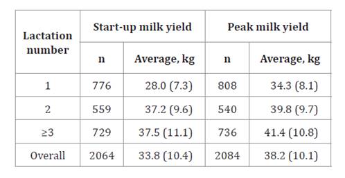 Table 4. Milk yield at start-up and peak average (SD) for cows calved during April and May 2022 in dairy farms in Argentina.