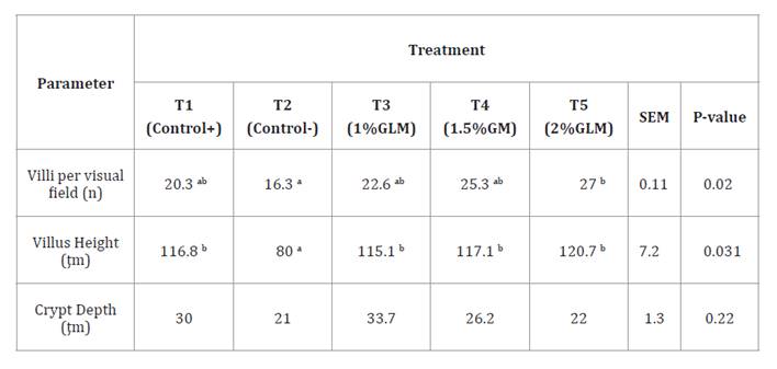 vellosidades (P = 0,03) aumentaron con la adición de GLM en comparación con los