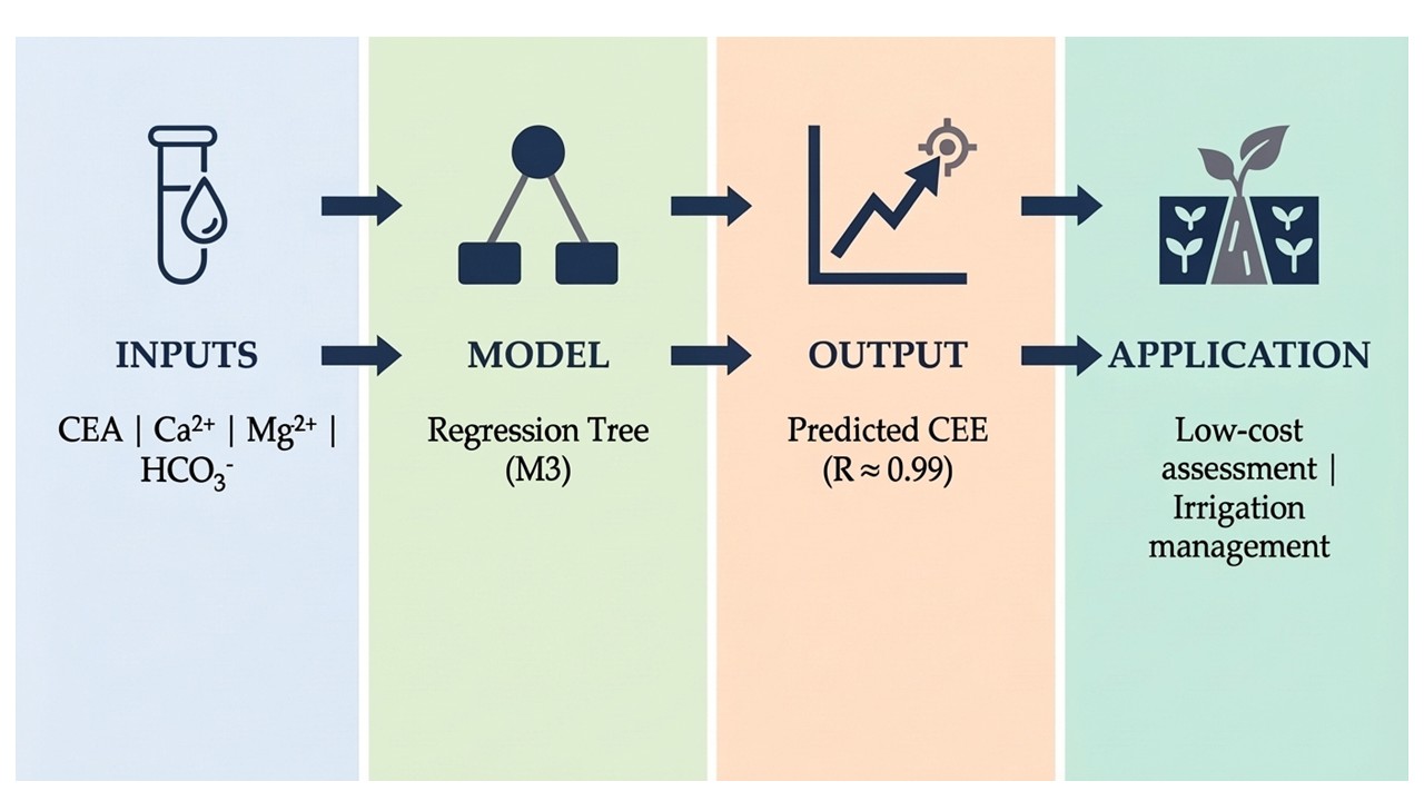 - Los modelos de árboles de regresión permitieron predecir con precisión la conductividad eléctrica efectiva (CEE) en aguas de riego bajo condiciones locales.